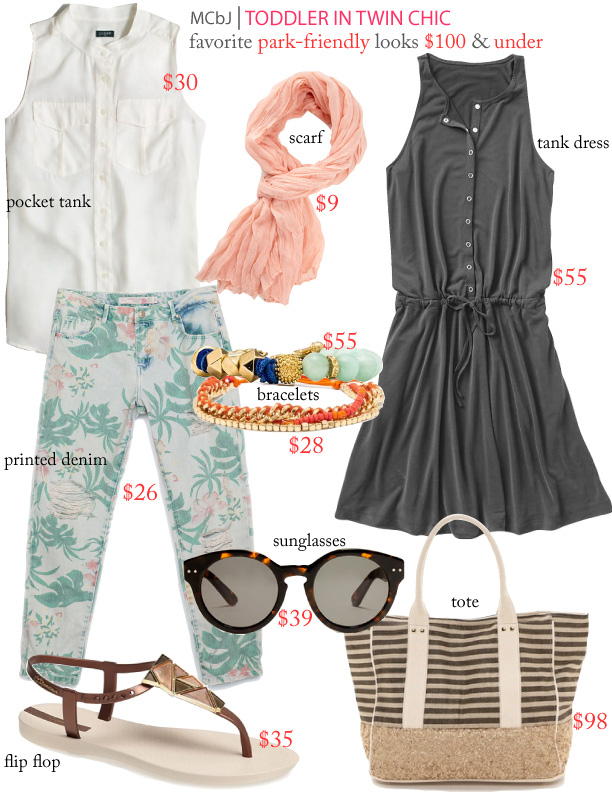But does this mean throw on some old sweat pants and a ratty t-shirt as though you are getting ready to paint the house? No no… We can still look mommy chic, but at the same time be in clothing that is priced for kid time and comfy enough for a ride down a slide. Check out our fave summer finds and you will be sprinting towards your little one in style in no time. xx