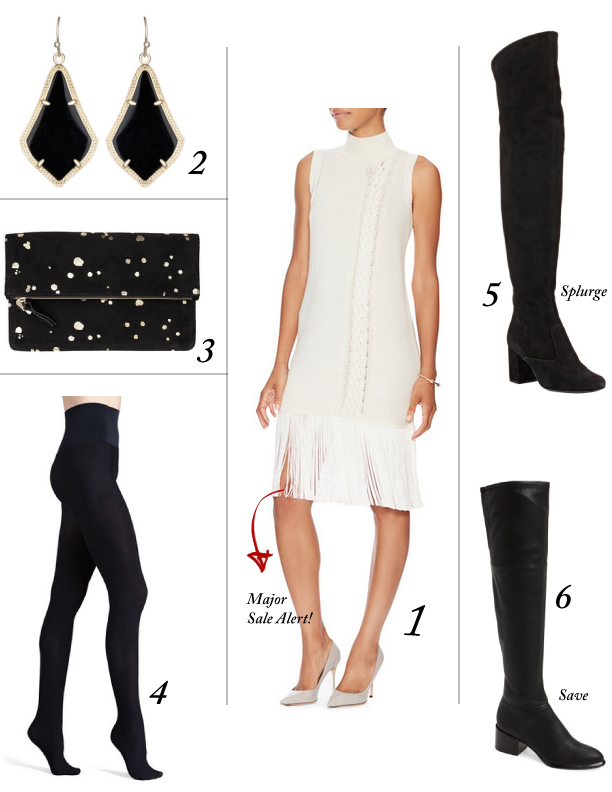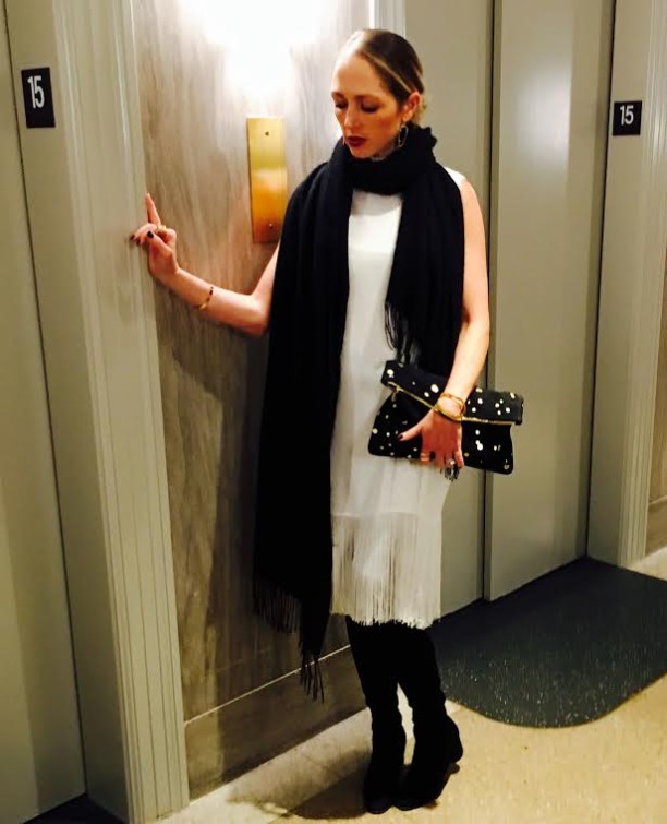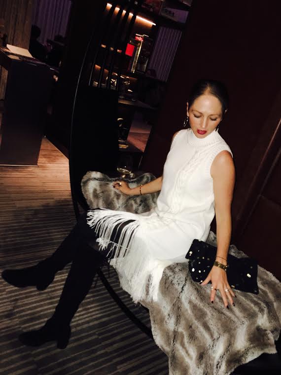 I noticed this gorgeous fringe sweater dress at Intermix at The Brentwood Country Mart a couple months ago and loooved it! However, I had splurged a bit recently and couldn’t add to my CC damage so I had to let it go… Or so I thought. Lucky me, the dress I loved was a birthday gift from one of my fabulous aunties. I decided the perfect time to debut the dress was in Chicago (where my aunt lives) on my recent trip out there. I loved wearing it so much that I wanted to share it with my readers… Especially because it is on a major sale right now!! This is a piece you can dress up as I have done here or you could throw on skinny jeans underneath it and wear with cowboy boots. However you style it the piece will stand out and hits the trends going strong right now: fringe and winter white.
