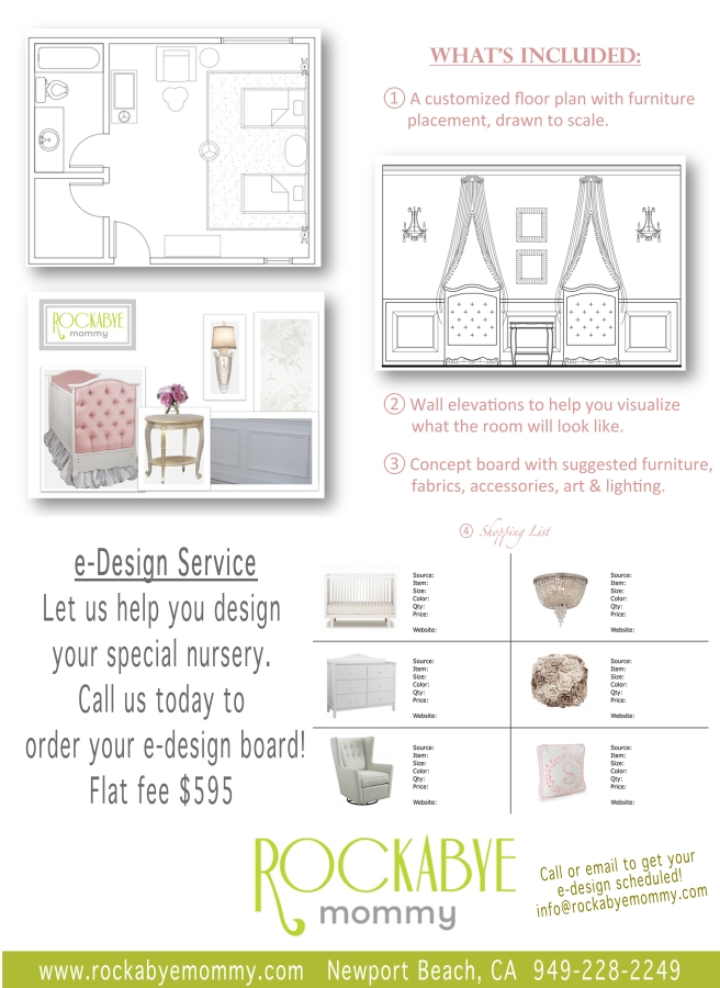 ROCKABYE mommy specializes in creating unique spaces for babies and children. With our e-design service, we are able to create customized room designs for anyone in the U.S.! A customized e-design packet can be emailed direct to your inbox in only 3-4 weeks. As experts in children’s room interiors, we will create an imaginative, whimsical and safe environment for your child to play, sleep and grow.