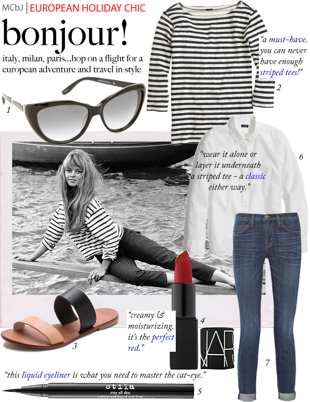 Not jetting off to St. Tropez? Sadly, neither are we. However, these are items are still for you. The effortless chic European style is always “in” no matter where you are. So whether you are hitting the Mediterranean or just your local park you will look trés magnifique! xx