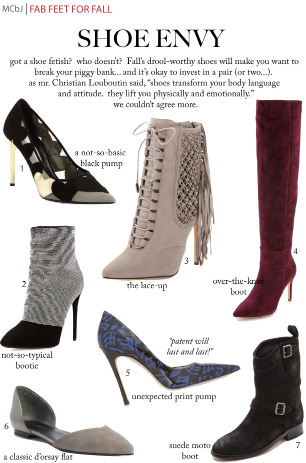 Decisions, decisions, decisions… When it comes to the lustworthy line-up of fall shoes, we want it all. However, we still want our husband’s love and our children to play soccer so buying every shoe that catches your eye is not recommended. We do however recommend splurging on one or two special pairs to wear this Fall/Winter. It truly is amazing how much your shoe can pull an outfit together, plus literally and physically lift your spirit. Now the tough part, deciding just what special shoe will occupy a special place in your heart and closet this Fall. xx