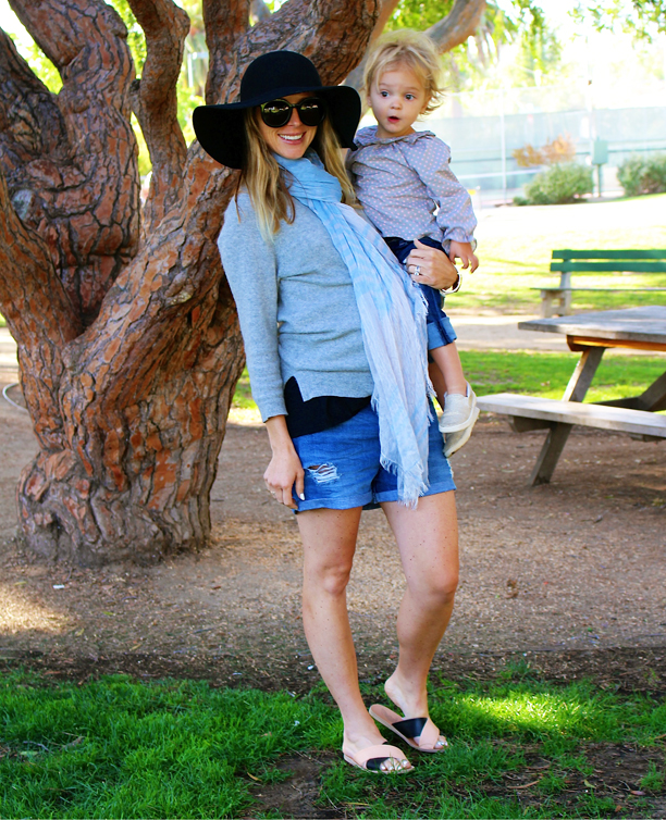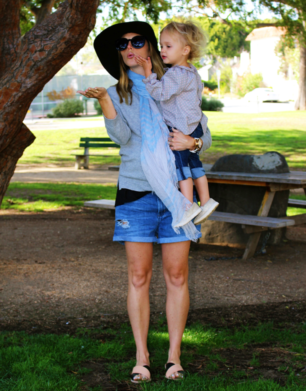 Today’s look for Fave 5 Friday is one that is comfortable, transitional, practical and yes, still chic. It proves that you can have your cake and eat it too. And just like park play with children is unpredictable (one minute you are looking at ducks and the next you going down a slide for the 10th time in a row), so can the weather be as we transition from spring to summer. This is why I recommend wearing fabrics that are durable and layering as needed. Below I share with you just a few of my “go to” items that are mommy and weather friendly. Happy Friday friends! xx