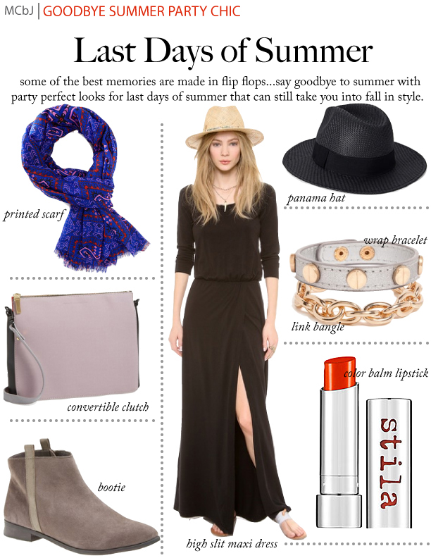 The time has come to say goodbye… to Summer that is. And Summer, we must say you have been so good to us! Your glowing sun, deep blue skies and carefree nights have left us memories to last a lifetime. Here at MCbJ, we too, have done our part to fill the glorious Summer days with beauty through our effortlessly chic looks. So naturally we will go out the same way we came in… in style of course!