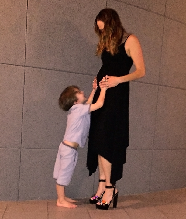 I admit the photo quality of these images is very poor, but I still wanted to share the moment with you. My sweet Tommy said he wanted a “photo with baby” and here he is having a trying to feel movement. There was no movement to be felt and he declared that “the baby is sleeping.” He still has not yet felt a kick, but my older son did a few days later and the look of awe and giddiness on his face is one I will never ever forget.