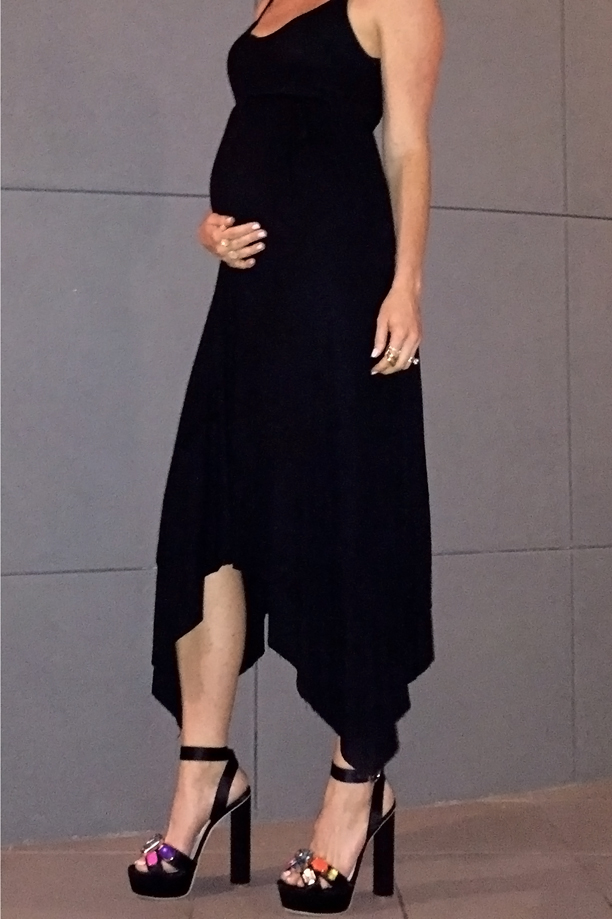 I am over the moon excited to have hit the halfway point in my pregnancy for a few reasons. First, I had my anatomy scan ultrasound and everything with the baby is healthy!! Second, I am half way to meeting my little lovebug! And third, I only have 20 more weeks (those are the better weeks for me) of being pregnant. As I have mentioned before, I don’t loooove being pregnant, but I do LOOOOVE what comes out of it. So… all of the above reasons call for a celebration. And what did I do to celebrate? Why, I bought myself a sparkly pair of black platform shoes, of course! Now all I have to do is make sure I can walk in them! xx