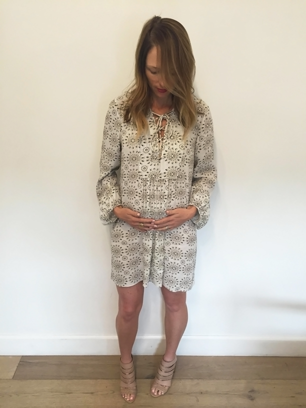 I seem to alternate between black dresses and boho dresses as clearly demonstrated in this week’s pregnancy style post. So true to the pattern here is the boho chic look. I recently came across this dress on the ZARA site and knew it was the perfect pregnancy dress. It is not maternity, so it is also perfect for any of you non-pregger ladies. It is nothing but flattering and obviously this is something we all want. And it wasn’t just the dress that is flattering, the shoes too add length to your legs with the nude color and shape. They will be a “go-to” for me through spring and summer. Yes, they are comfortable for a pregnant woman to wear… to me anyway. 🙂