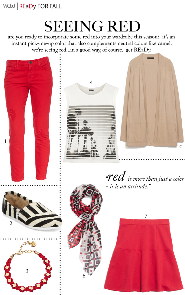 This year the statement color was in full force on the runways as models strutted the catwalk in head to toe red ensembles. Now while you may not be ready to make that statement I encourage anyone to work some red into their Fall/Winter wardrobe. Just remember to own that pair of red pants as you strut down that soccer field. After all, red is more than just a color – it is an attitude. xx