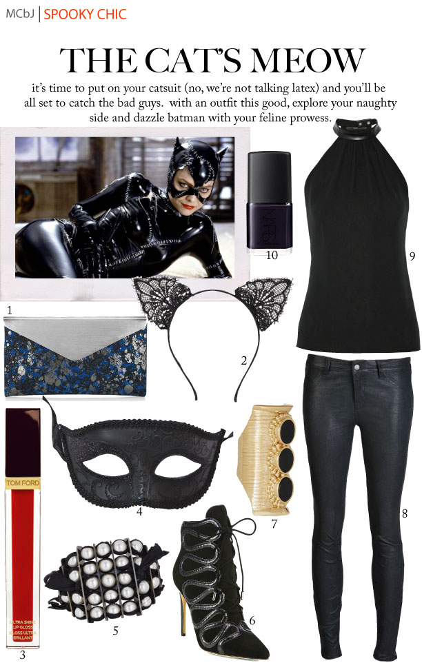 For today’s “spooky chic” look we take inspiration from the ultimate sexy feline: Catwoman. However, this is not about what costume you should buy. This is about head to toe leather look for real life. It is a date night look that is both alluring and sophisticated. Not to mention leather and black are two things that never go out of style. Plus if you really don’t feel like buying a cheesy costume just grab some ears and mask for a Halloween costume that will have your hubby saying, Meow Mama. xx