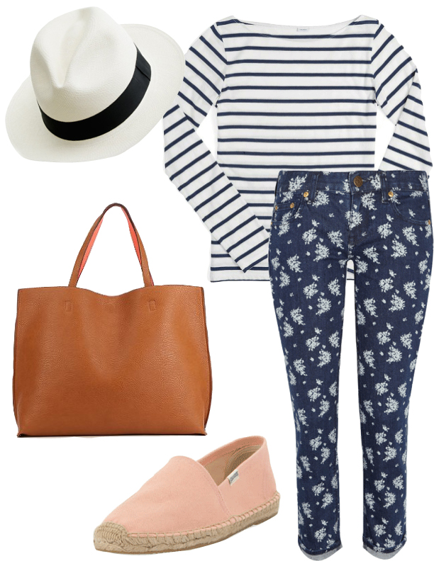 This week as we approach Mother’s Day, we want to celebrate you: The Super Mommy! We start the week with a look that every mom should have in their wardrobe. A cute, but comfy tee. A fun, flattering pair of jeans. Some casual, cool flats. Accessorize your look with a fabulous hat that looks good and keeps those nasty little things, known as wrinkles, away. Finally, you need the perfect tote – perfect for stuffing the thousands of things you need to carry around.